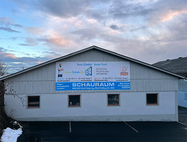 Ab dem Frühjahr 2023 betreiben wir in 8230 Hartberg, Schildbach 30, unseren neuen Schauraum. Eine große Auswahl unserer Produkte wird ihnen dann "zum Angreifen" zur Verfügung stehen.