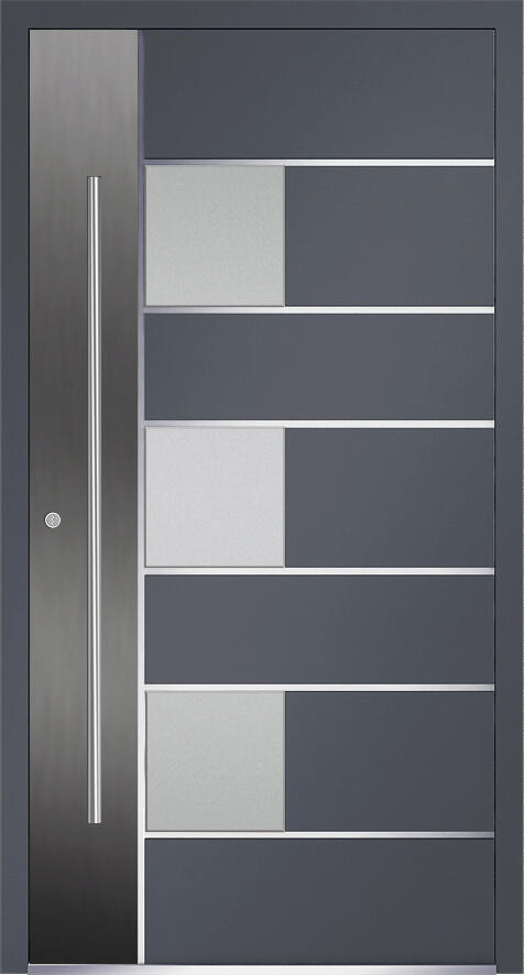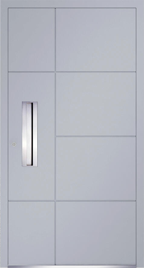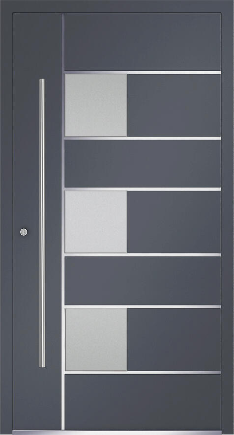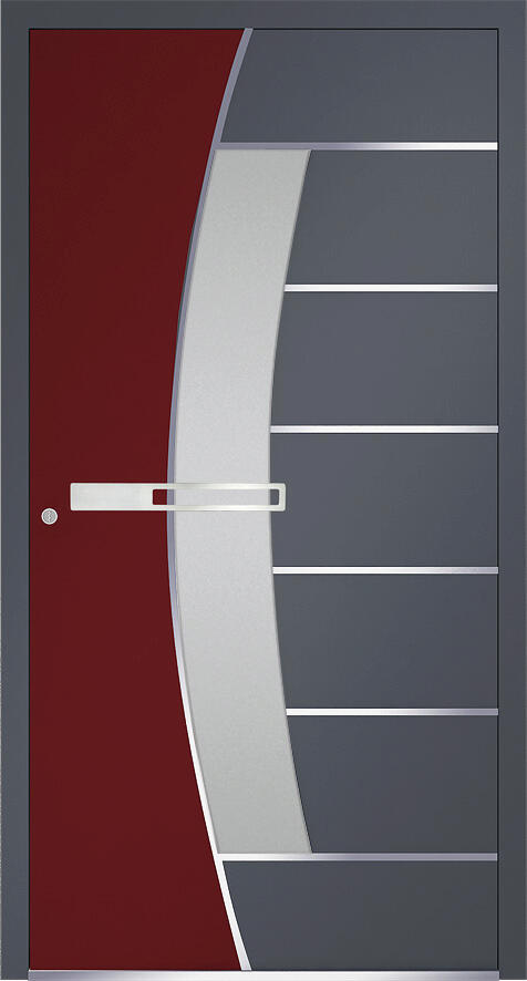 Die Konstruktion basiert auf den Systemen der wärmegedämmten MB-70, MB-104 Passive, und MB-86-Aluminiumprofile, die im aktuellen ALUPROF-Angebot die technologisch fortschrittlichsten Türsysteme sind. Das Flügelprofil ist mit speziellen Füllungen, die mit der Oberfläche des Rahmens bündig sind, kombinierbar. Sie können ein- oder beidseitig mit den Tragprofilen verklebt werden. Die Möglichkeit, verdeckte Scharniere zu verwenden, erhöht zusätzlich den ästhetischen Wert der Tür.